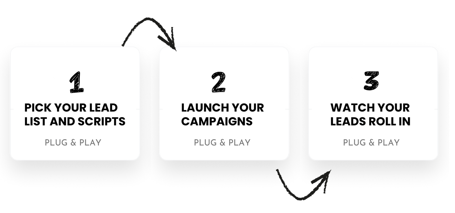Take our leads, take our scripts, launch campaigns, watch potential clients roll in